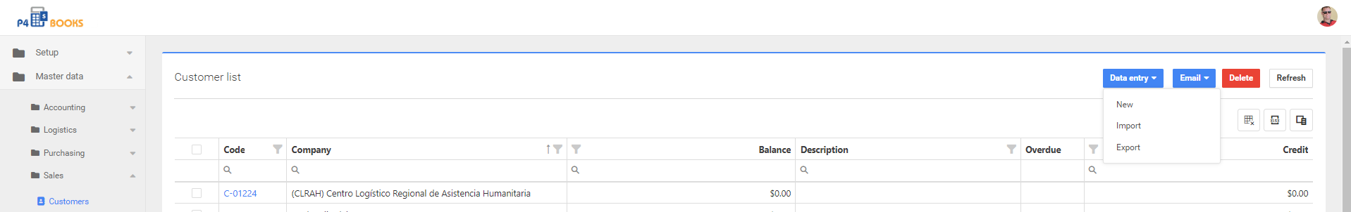 Ir a Master Data >Sales > Customers.