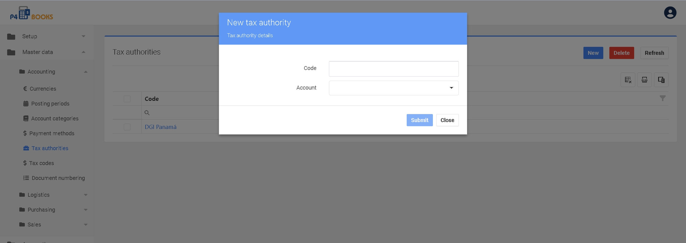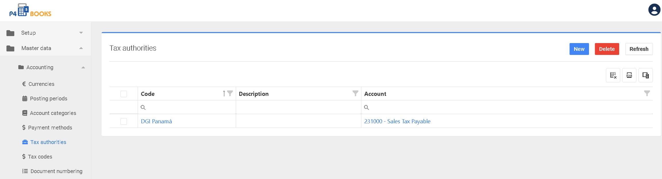 Una vez en la pantalla de configuración de la Autoridad Fiscal, haga clic en el botón Nuevo.