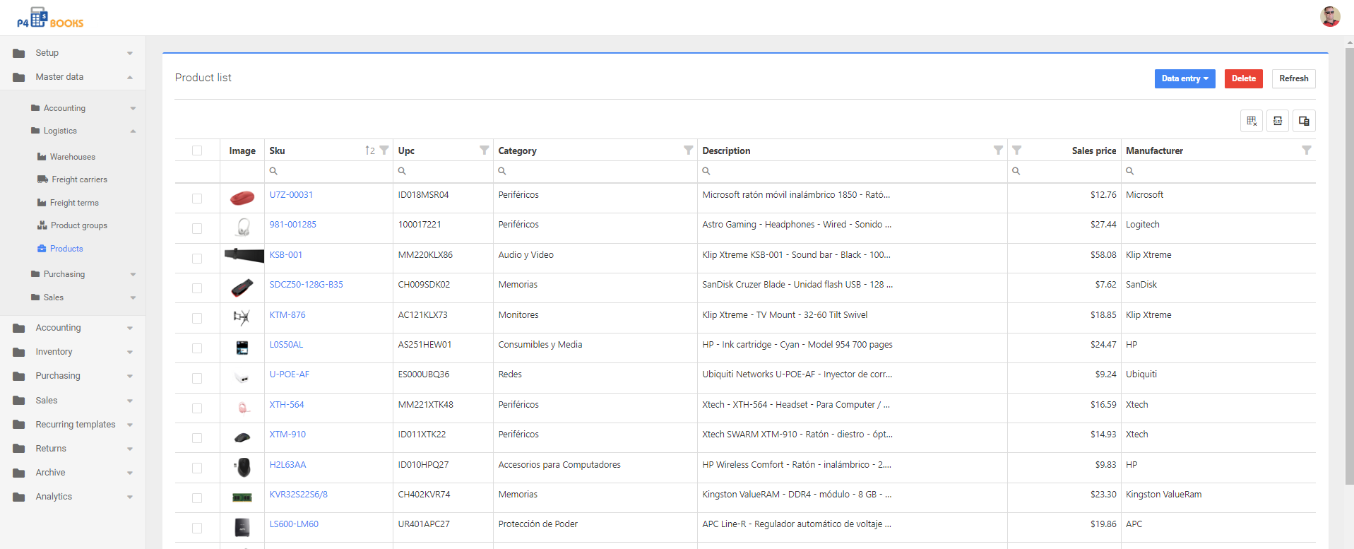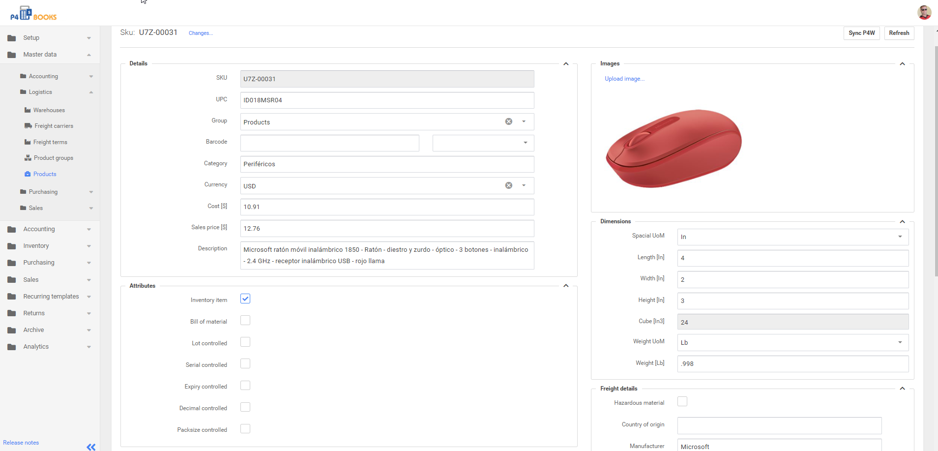 Como verá a continuación, la principal diferencia entre P4 Books y otros sistemas ERP es nuestra capacidad para realizar el seguimiento de números de serie, números de lote, fechas de caducidad, listas de materiales, tamaños de embalaje (unidades, embalaje interior, cajas, palés), códigos de barras, UPC y artículos con control decimal. Además, P4 Books puede gestionar todas sus necesidades de transporte y cuestiones de conformidad.