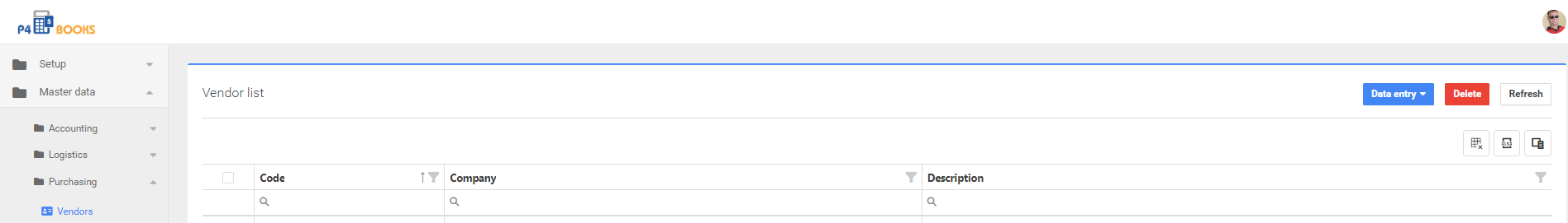 Ir a Master Data >Purchasing > Vendors.