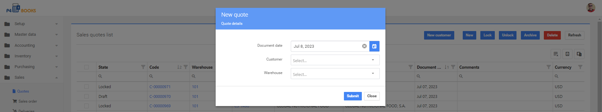 Para crear una Cotización en P4 Books: