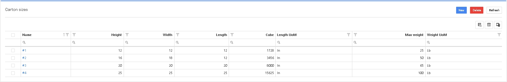 Para añadir un nuevo tamaño de caja, haga clic en el botón Nuevo.