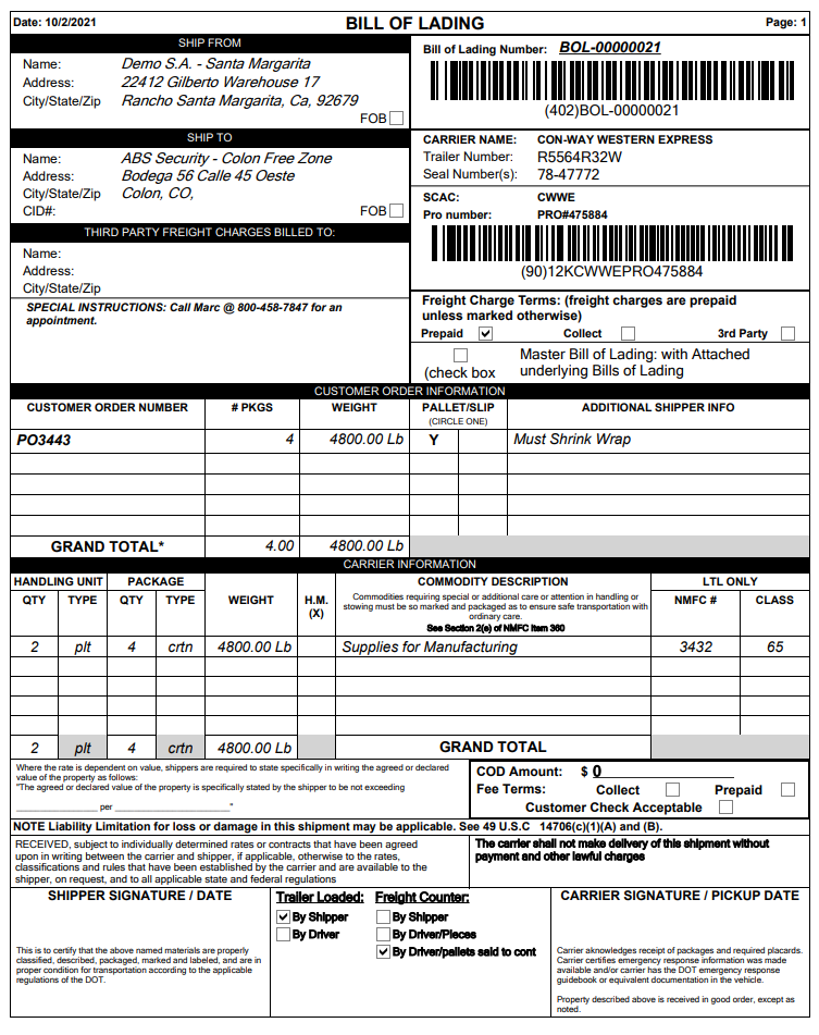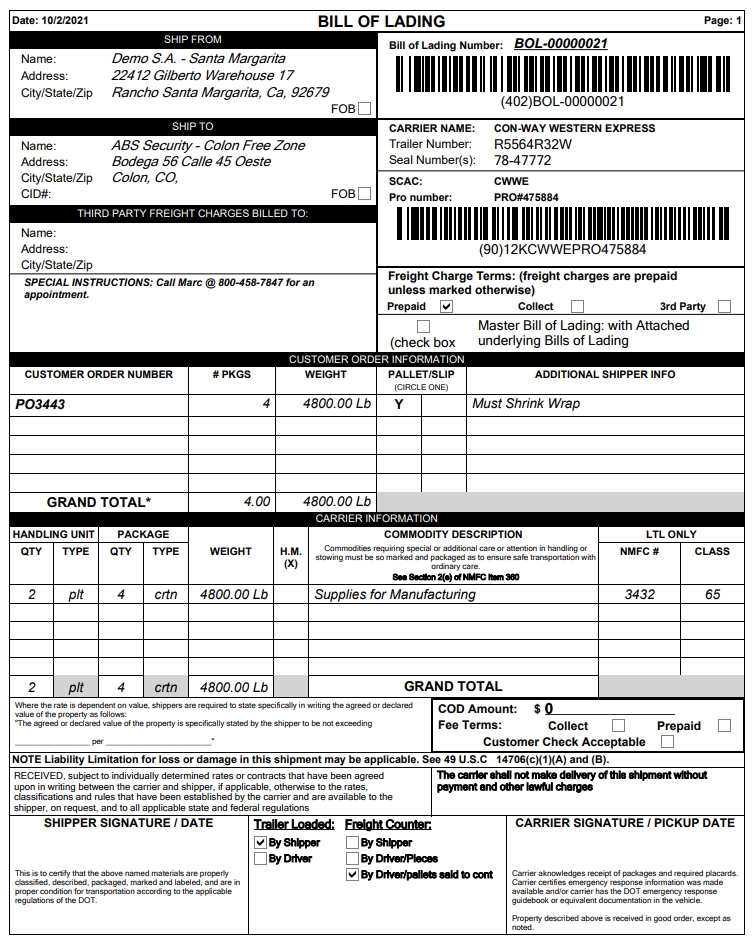 Los pedidos pueden añadirse a un conocimiento de embarque de uno en uno o en bloque, en función de sus procesos.