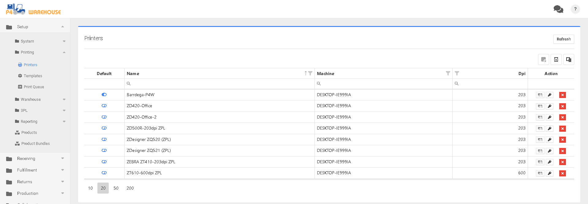 Las impresoras son configuradas por su P4 Warehouse Partner, por favor contacte con el partner que le vendió la solución P4 Warehouse para que le ayude a configurar sus impresoras dentro de P4 Warehouse.