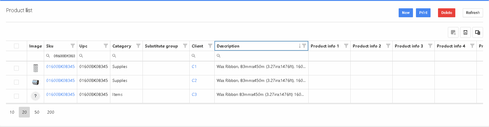 En la pantalla de la lista de productos, puede seleccionar la(s) casilla(s) en la columna de la izquierda y luego hacer clic en imprimir. Esto imprimirá las etiquetas de los productos seleccionados.
