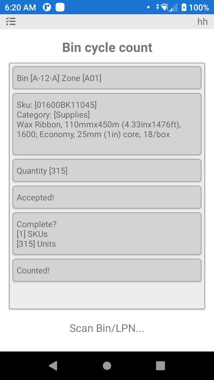 La opción de recuento cíclico es para el proceso de recuento del inventario físicamente dentro del almacén (ubicaciones). Las razones típicas para el recuento cíclico son obtener un recuento preciso del inventario en una ubicación o en todo el almacén. Con el tiempo, el inventario real del almacén puede no coincidir con el contabilizado en el software P4 Warehouse (debido a roturas, robos, etc.). Por lo tanto, un recuento cíclico contabiliza con precisión el inventario físico. El recuento cíclico incluye un campo de opción para la papelera en la parte superior y una sección de registro en la parte inferior.