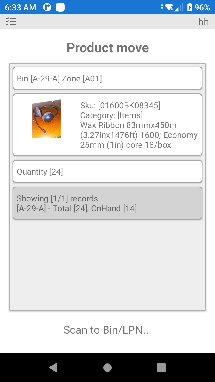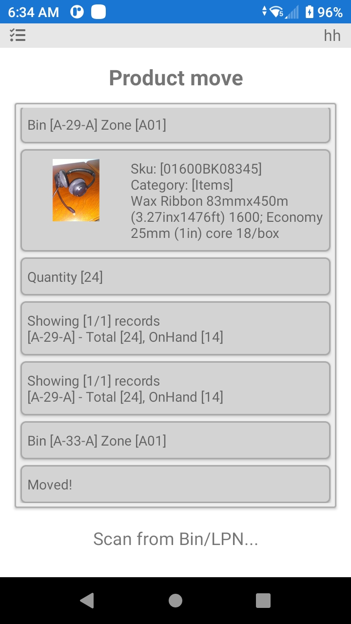 Seleccione la opción Desplazar producto y, a continuación, escanee la primera ubicación en la que está asignado actualmente el producto.