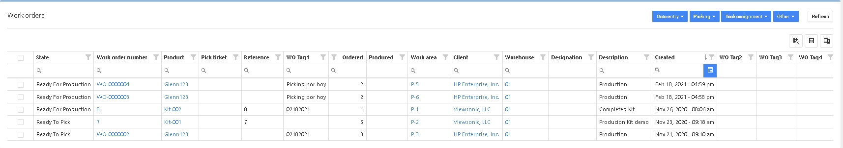P4 Warehouse Órdenes de trabajo abiertas - Producción
