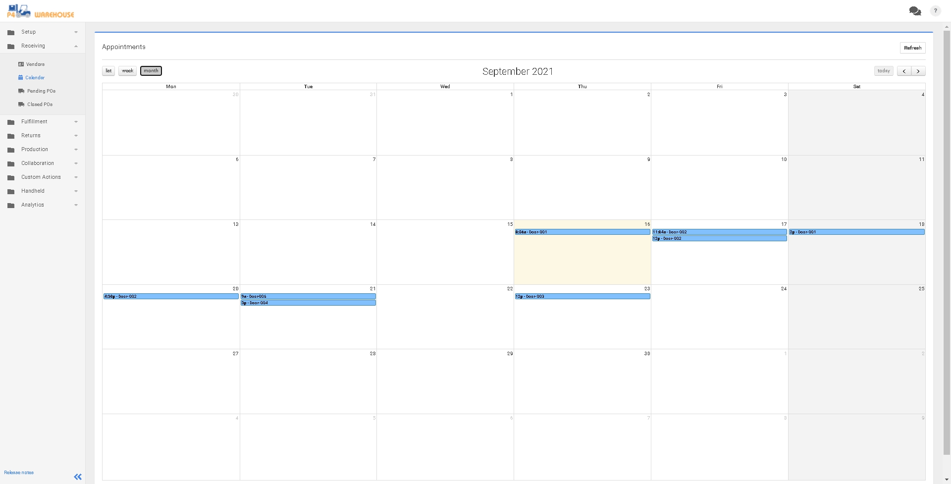 Desde la opción calendario de la pantalla de recepción del almacén P4 podrá ver sus envíos entrantes.
