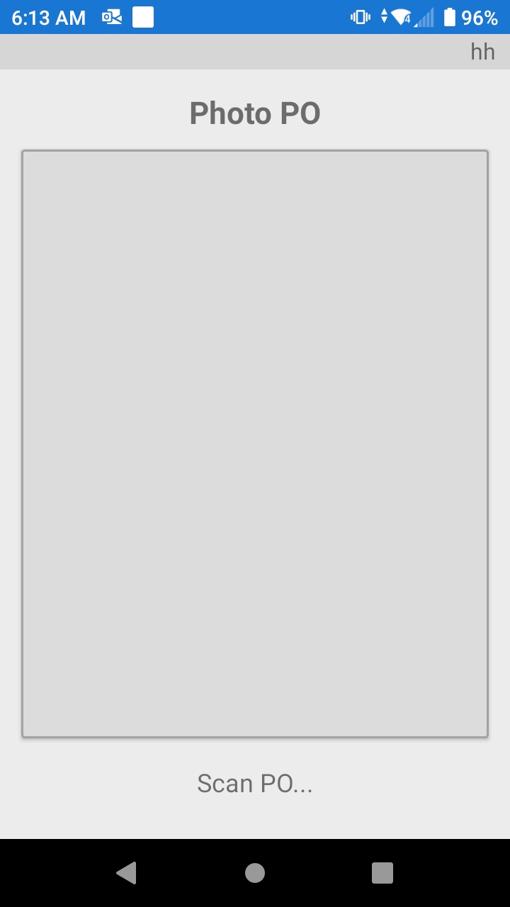 Después de seleccionar PO Foto en el menú de recepción, escaneará la etiqueta de la orden de compra y se le presentará la opción de capturar fotos.