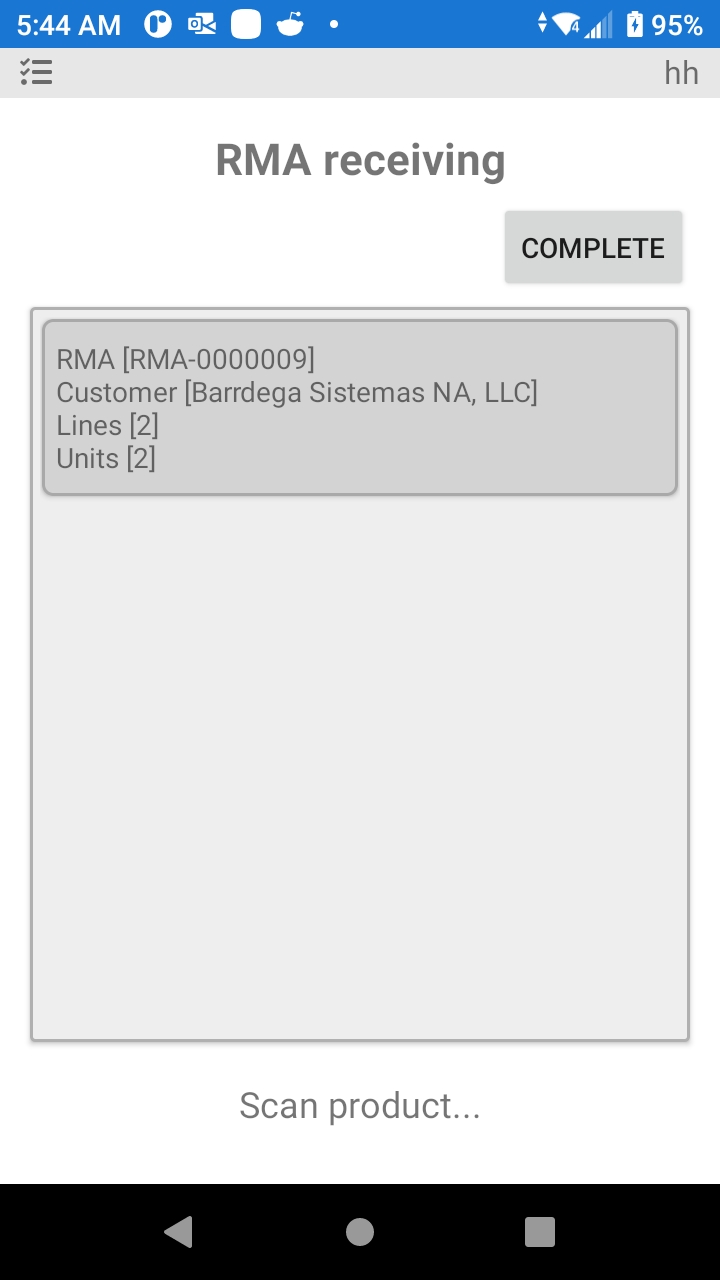 La recepción de RMA funciona exactamente igual que el proceso de recepción de PO, excepto que no se permite la sobre-recepción.