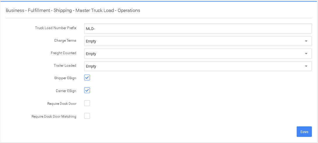 En esta pantalla podrá configurar los parámetros por defecto del Master Truck Load.