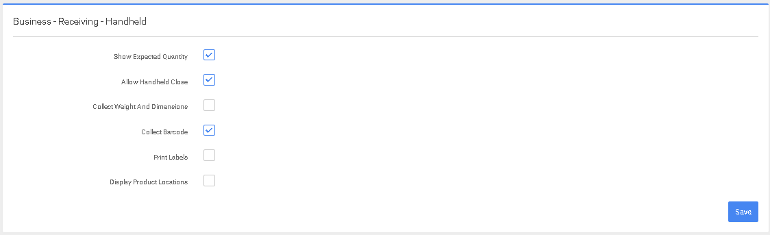 Peso y dimensiones de la recogida: Este es un ajuste vital si el peso y las dimensiones del producto son importantes para su operación. Si se activa en la recepción, si el producto carece de peso y dimensiones, el dispositivo de mano pedirá al receptor que introduzca los datos correctos.