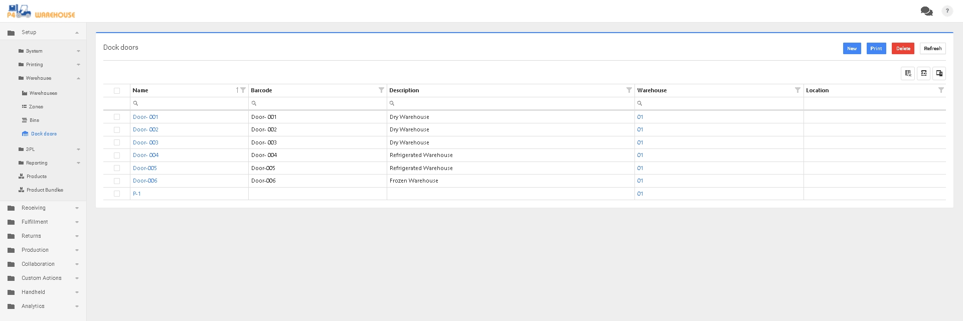 Haga clic en nuevo para crear una nueva puerta de muelle y, a continuación, seleccione la casilla situada a la izquierda de la columna del nombre para imprimir las etiquetas de la puerta.