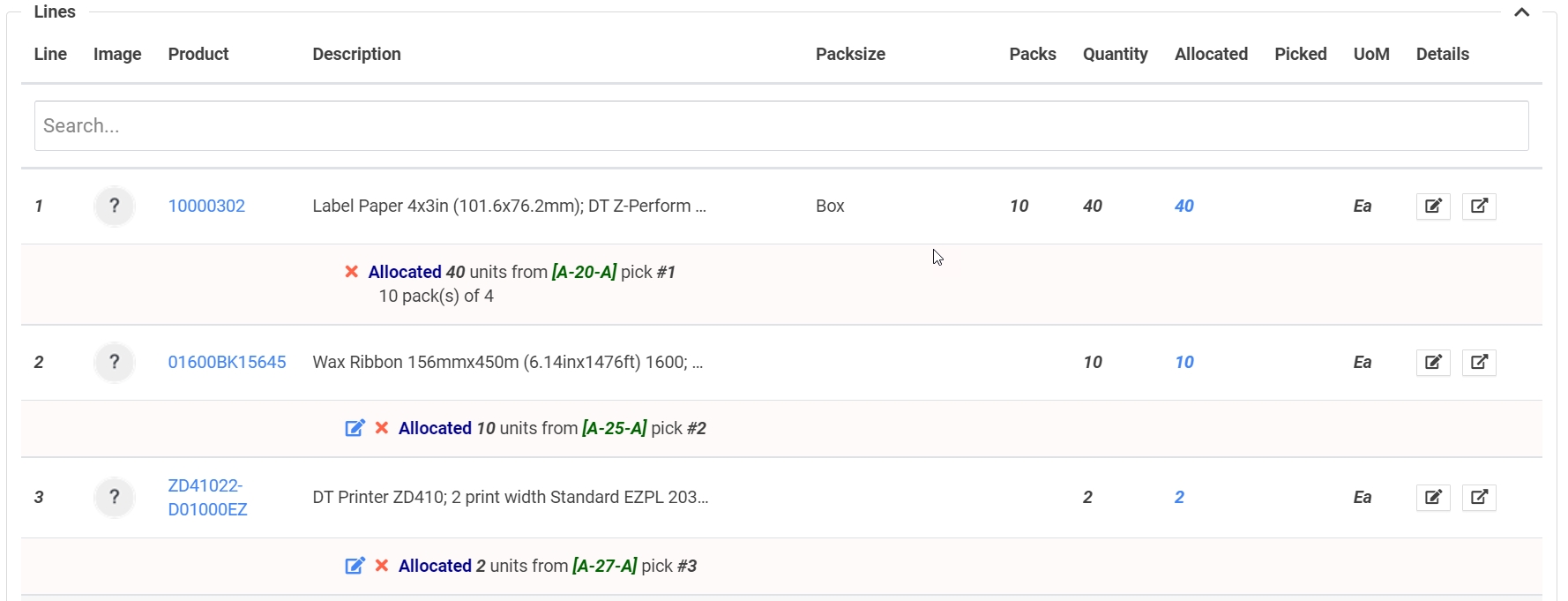 El ticket de picking está ahora en estado Ondulado y la sección Totes es ahora visible: