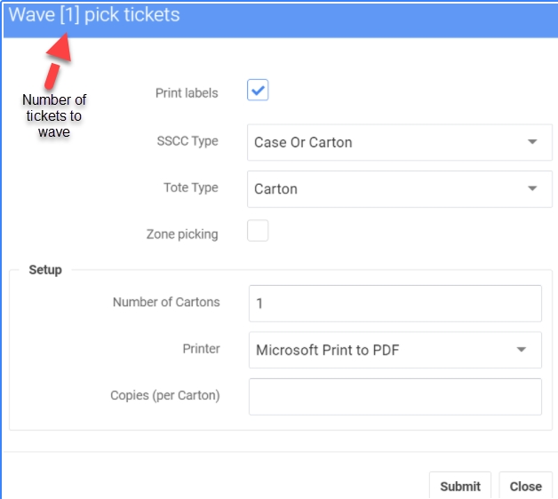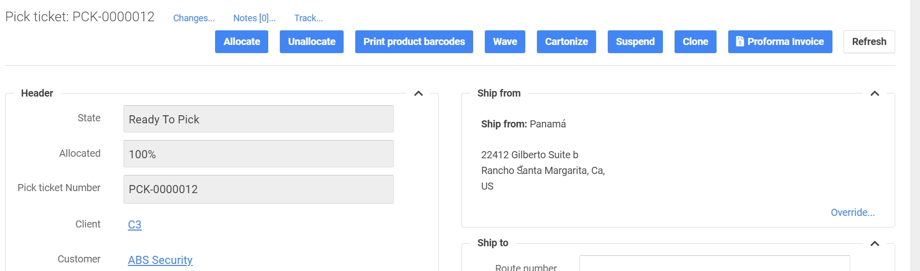 La onda manual se realiza a través del menú Pick ticket y puede hacerse como una sola orden o agrupada utilizando la pestaña Pick tickets.