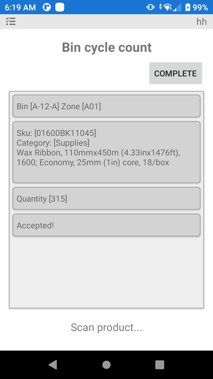 La opción de recuento cíclico es para el proceso de recuento del inventario físicamente dentro del almacén (ubicaciones). Las razones típicas para el recuento cíclico son obtener un recuento preciso del inventario en una ubicación o en todo el almacén. Con el tiempo, el inventario real del almacén puede no coincidir con el contabilizado en el software P4 Warehouse (debido a roturas, robos, etc.). Por lo tanto, un recuento cíclico contabiliza con precisión el inventario físico. El recuento cíclico incluye un campo de opción para la papelera en la parte superior y una sección de registro en la parte inferior.