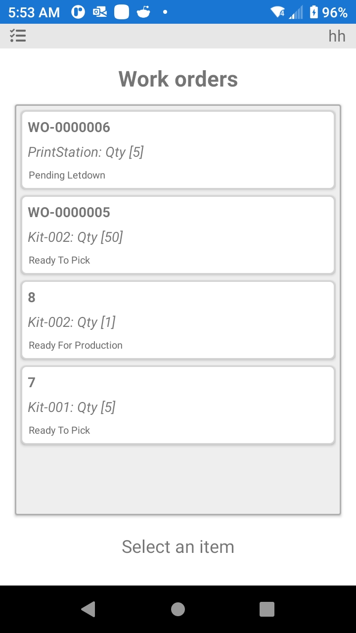 La Lista de órdenes de trabajo muestra una lista de las órdenes de fabricación que están listas para ser producidas.