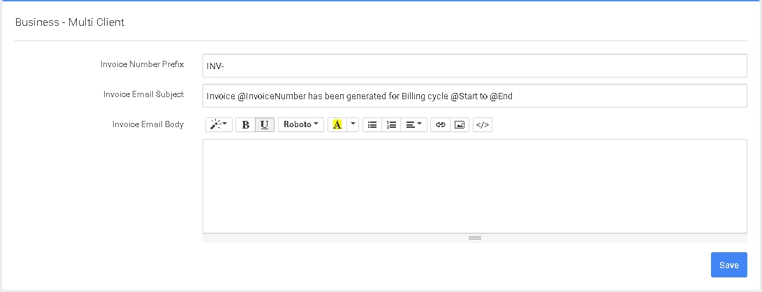 En esta página puede configurar el formato de correo electrónico para enviar facturas 3PL a sus clientes 3PL.